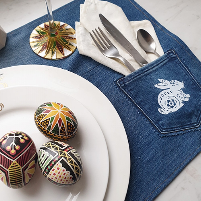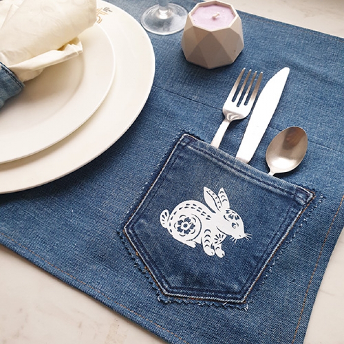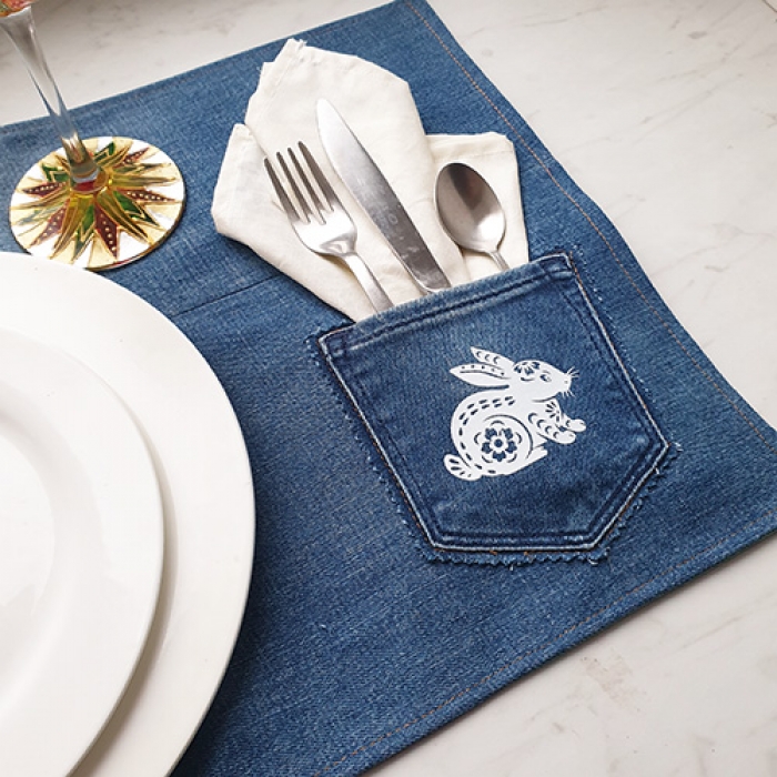 Tags: Recycled denim placemats Set, Denim placemats, Placemats with Pocket, Jean Placemats, Repurposed Jeans, Table Setting, Denim Wedding Decor, Easter placemats, house warming party placemats