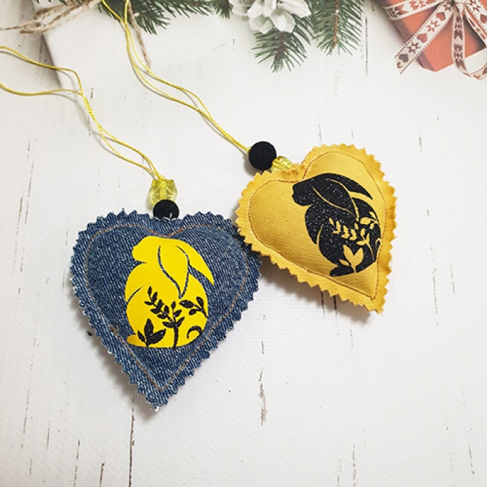Tags: Jeans hearts, Christmas Ornaments, Boho Home Decor, Denim hearts, Upcycle Denim hearts, Recycle Jeans hearts, Christmas decoration, Black Rabbit, symbol 2023,
