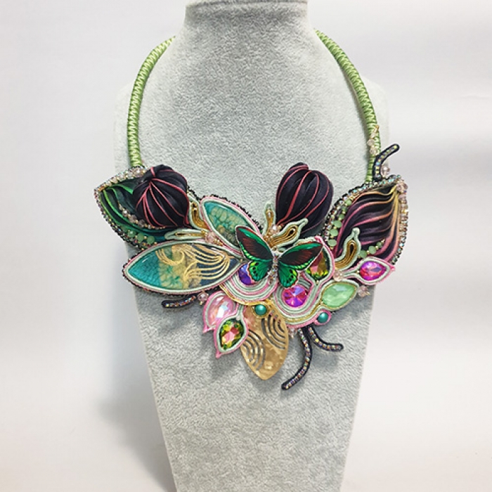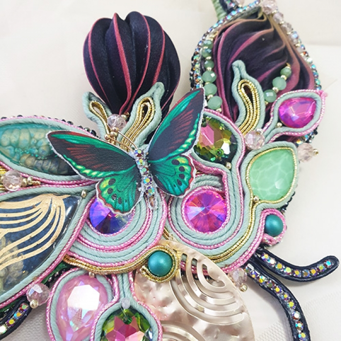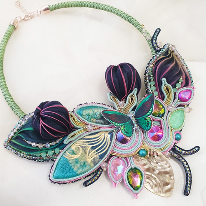 Tags: hibori necklace, Shibori set, Soutache necklace, One of a kind jewelry set, Elves necklace, Statement necklace, OOAK, Butterfly necklace, Beaded Necklaces, Soutache embroidery