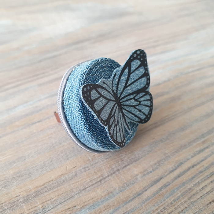 Tags: Butterfly Denim, Jeans ring, Denim ring, Butterfly ring, Eco-friendly jewelry, Denim art, Butterfly Denim ring