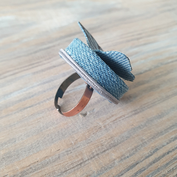 This denim ring is a unique piece of jewelry. Blue jeans always remain on the catwalk in one form or another. This recycled denim ring highlights the beauty of denim and is a fine example of sustainable fashion. Unique, eco-friendly, hand sewn, recycled and handmade with love, this ring protects our planet by using reused materials.