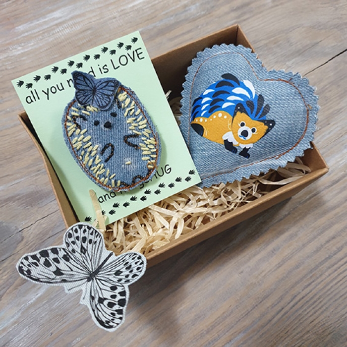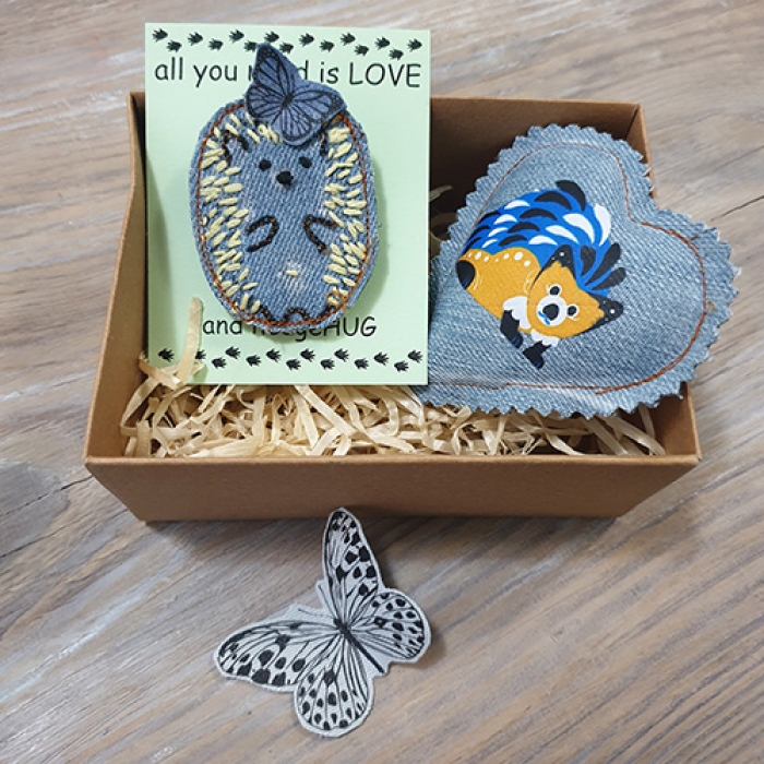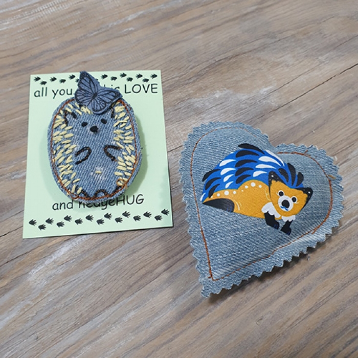 Tags: Denim Hedgehog set, Denim Hedgehog brooch, Upcycled Denim brooch, Hedgehog Friendship Token, Hedge Hug, Pocket Hug, Hedgehog heart