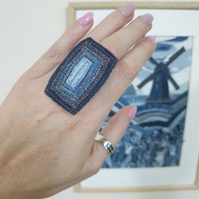 Tags: Geometric Denim, Jeans ring, Denim ring, Eco-friendly jewelry, Denim art, Abstract Denim ring
