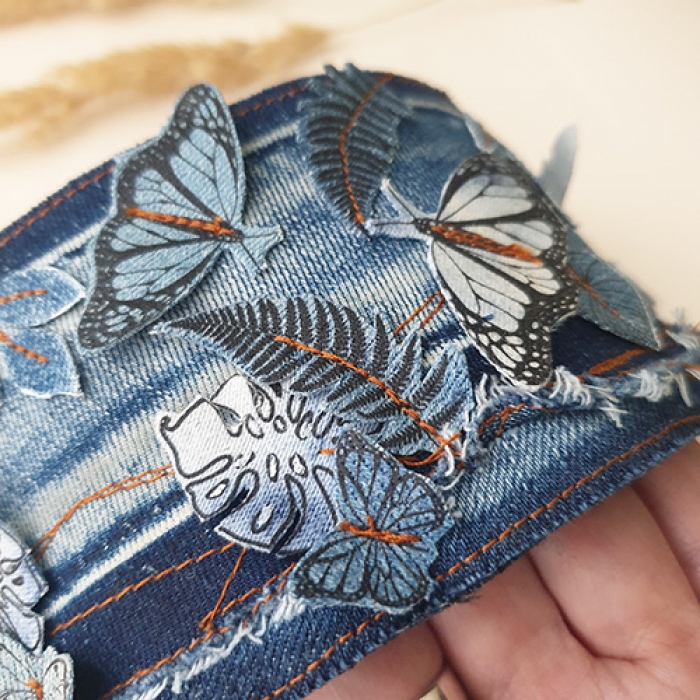 Tags: Denim bracelet, Embroidered bracelet, Upcycled denim Bracelet, Eco-friendly jewelry, One of a kind