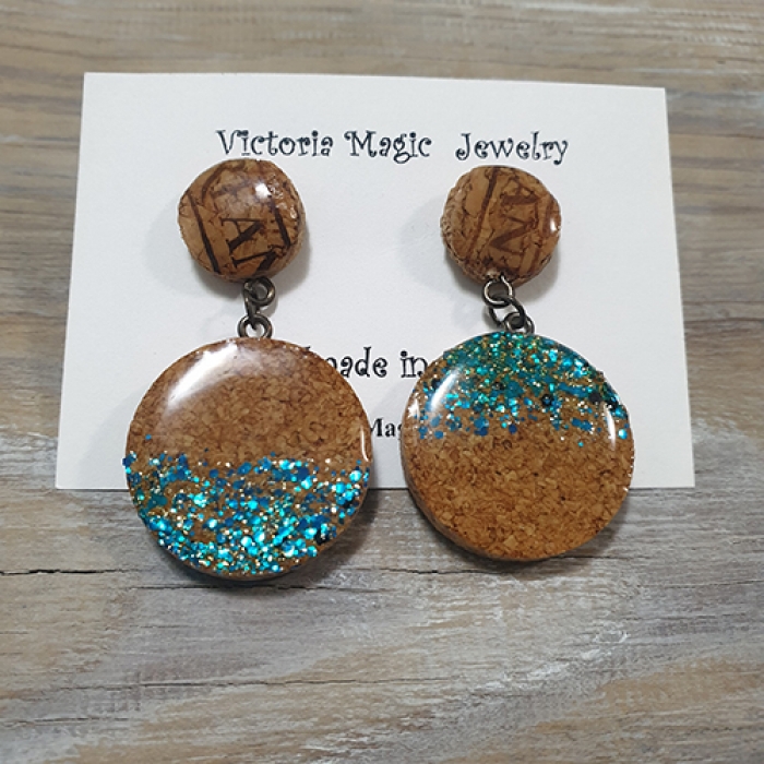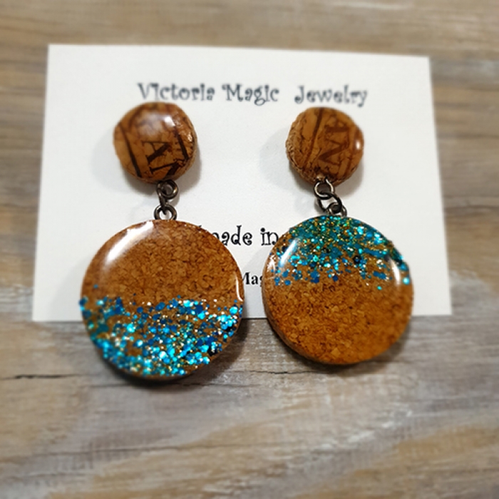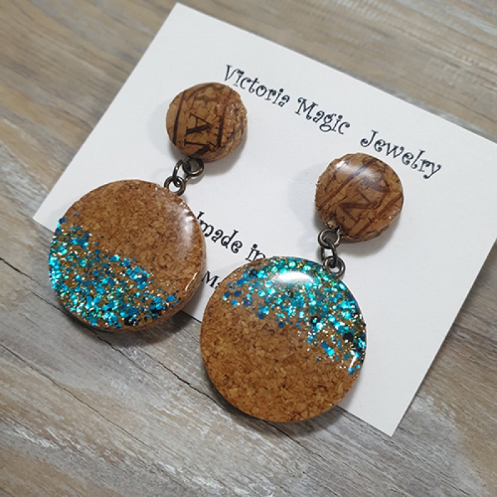 These hand painted earrings are made from sliced recycled wine corks. Wine corks are hand-sliced, polished, hand painted and coated with epoxy resin.