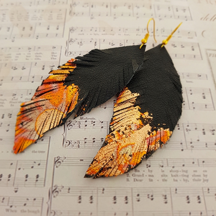 Tags: Leather feathers earrings, Leather Earrings, Feathers earrings, Boho Earrings, Lightweight earrings, Eco-friendly, Recycled Leather
