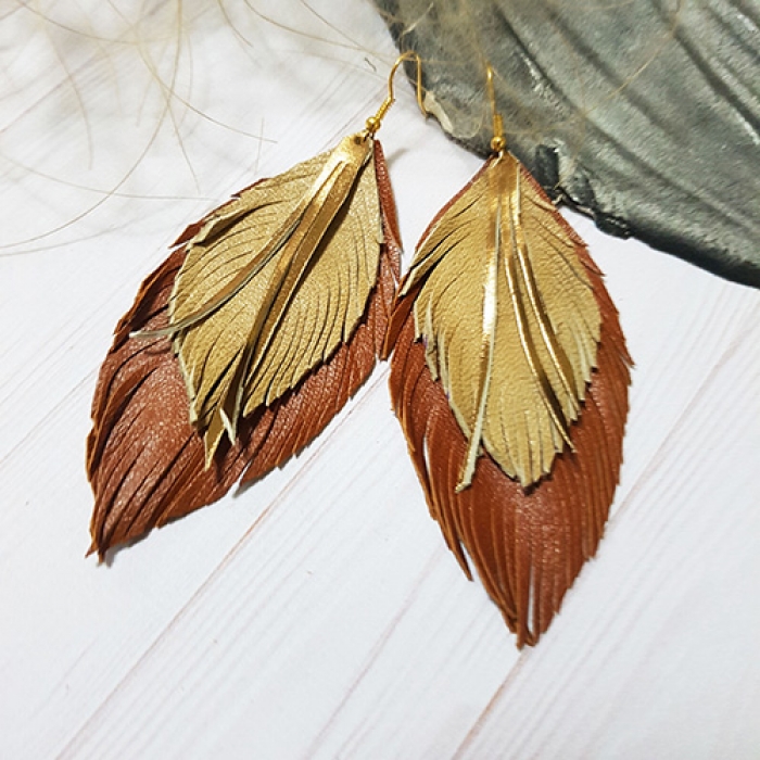Tags: Double Feathers Leather Earrings, Leather feathers earrings, Leather Earrings, Feathers earrings, Boho Earrings, Lightweight earrings, Eco-friendly, Recycled Leather, Brown feathers earrings