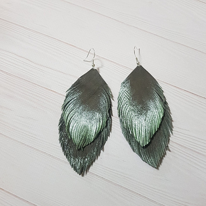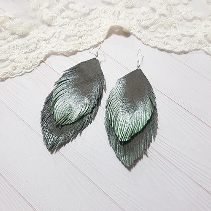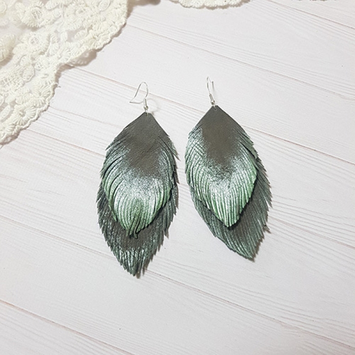 Tags: Double Feathers Leather Earrings, Leather feathers earrings, Leather Earrings, Feathers earrings, Boho Earrings, Lightweight earrings, Eco-friendly, Recycled Leather, Gray feathers earrings