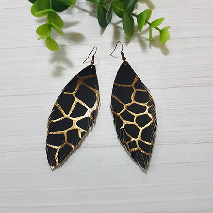 Tags: Leather feathers earrings, Leather Earrings, Feathers earrings, Boho Earrings, Lightweight earrings, Eco-friendly, Recycled Leather, Black-gold feathers earrings