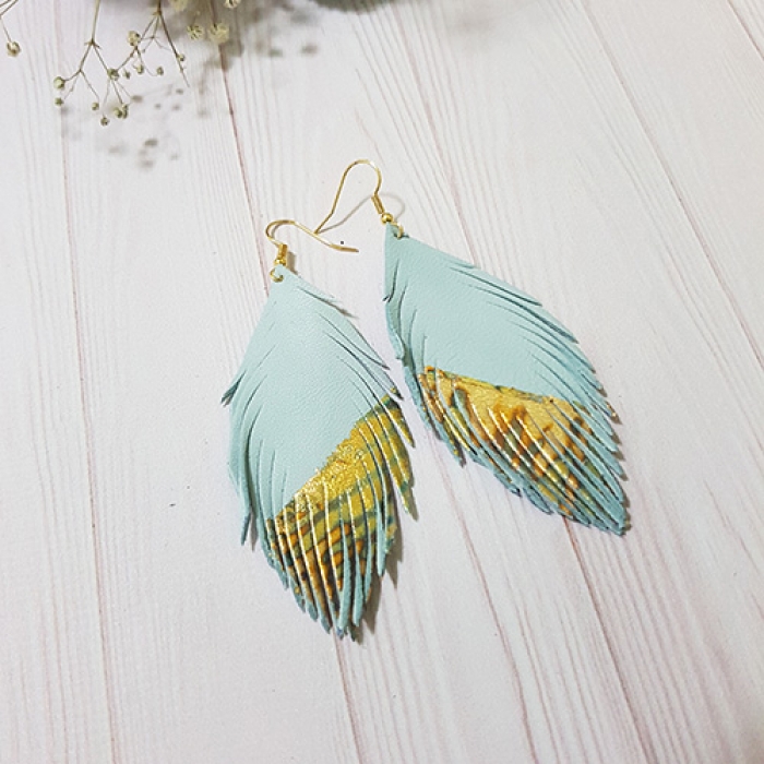 Tags: Leather feathers earrings, Leather Earrings, Feathers earrings, Boho Earrings, Lightweight earrings, Eco-friendly, Recycled Leather