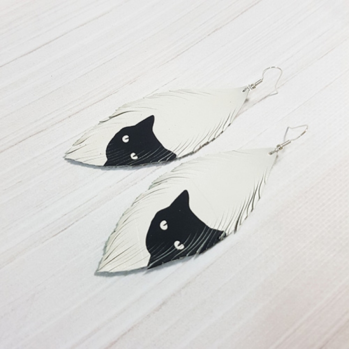 Tags: Leather feathers earrings, Leather Earrings, Feathers earrings, Boho Earrings, Lightweight earrings, Eco-friendly, Recycled Leather, Black cat feathers earrings